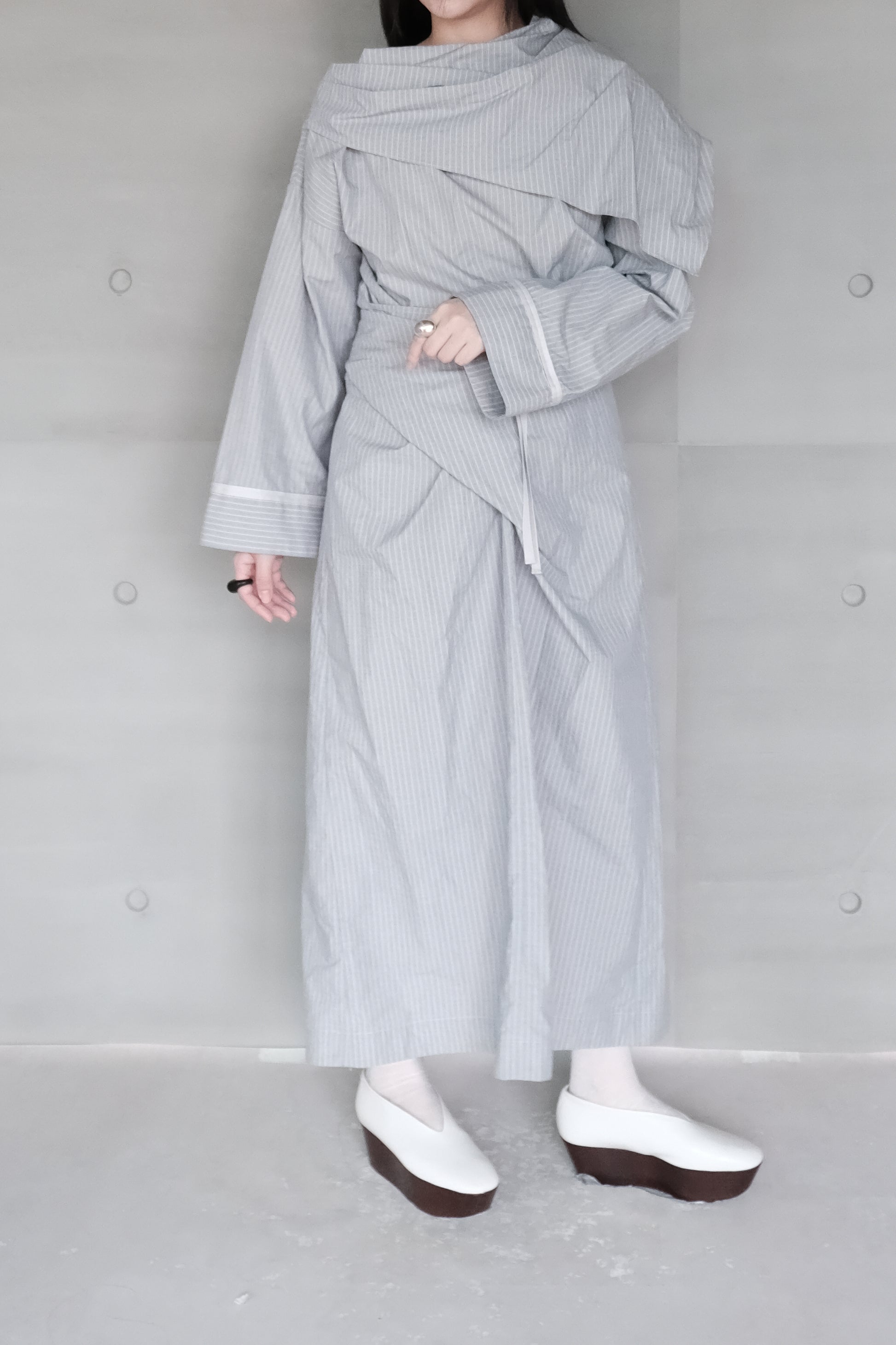 blue striped canvas wrapped dress (in-stock)