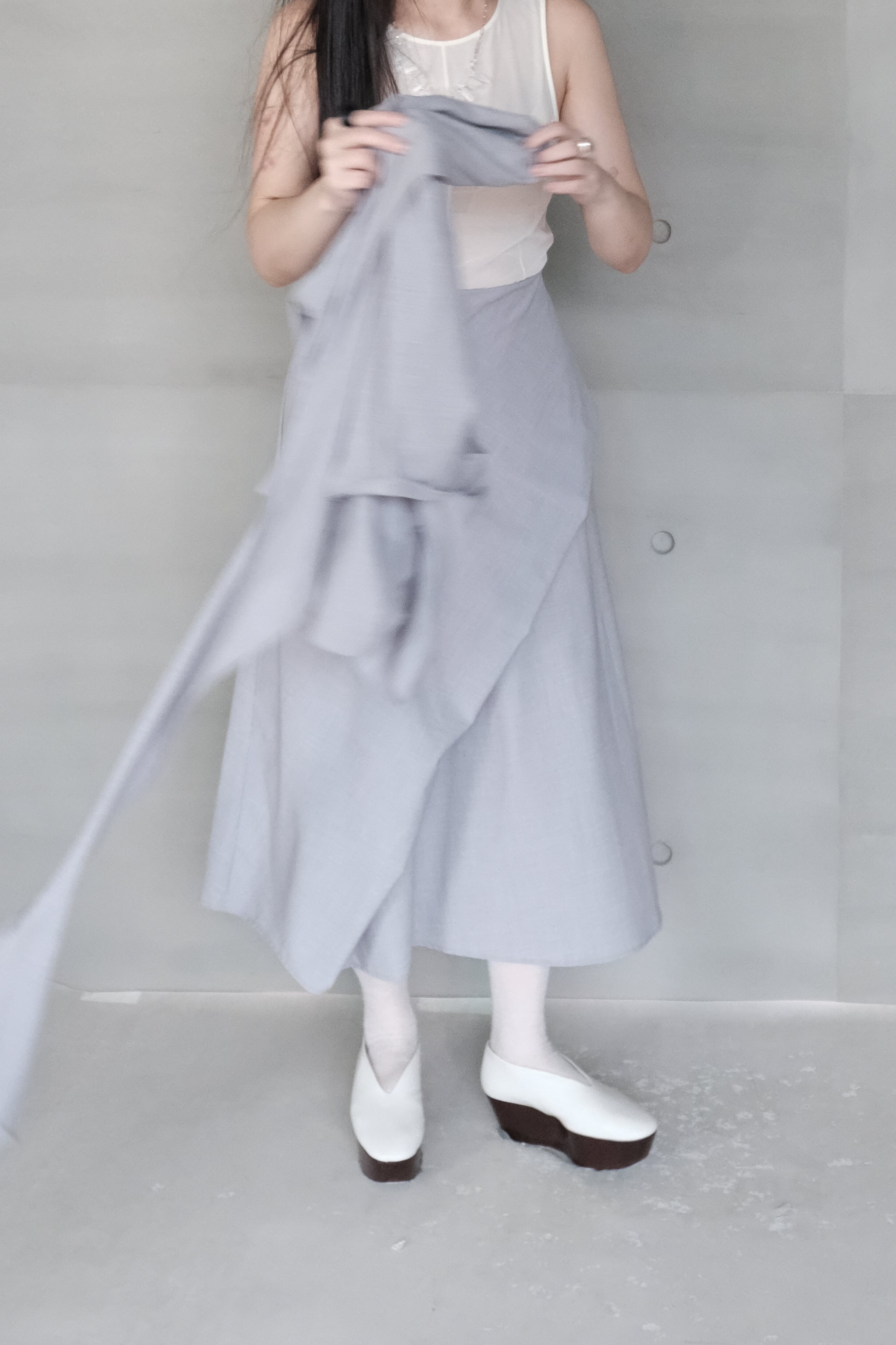 asymmetric - draped layer in front, with beautiful fabric from Japan. A subtle design feature to elevate your look, crafted with expertly sourced materials for a quality finish.