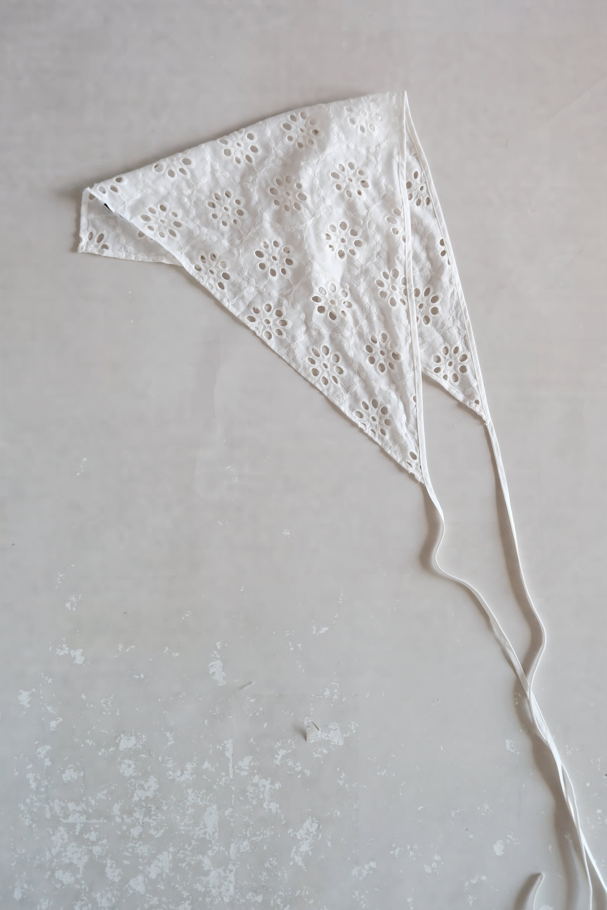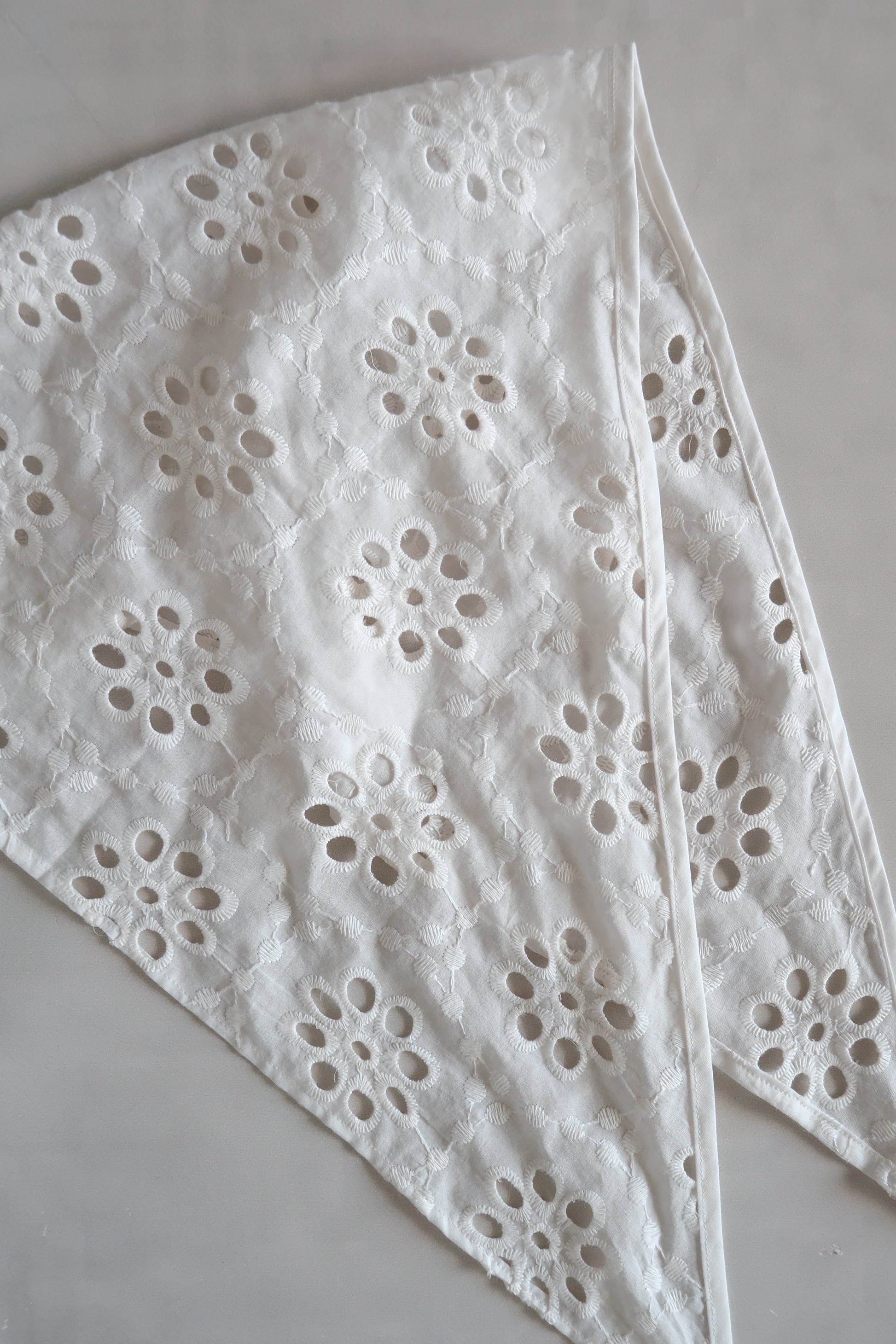 以細緻的蕾絲提花布製作而成,柔軟輕盈,呈現優雅而不造作的氣質。三角剪裁設計可自由變化多種佩戴方式——可作為領巾、頭巾,或繫於腰間作為造型點綴,一條即可完成多種風格的搭配。非常適合日常穿搭與旅遊隨身配件。