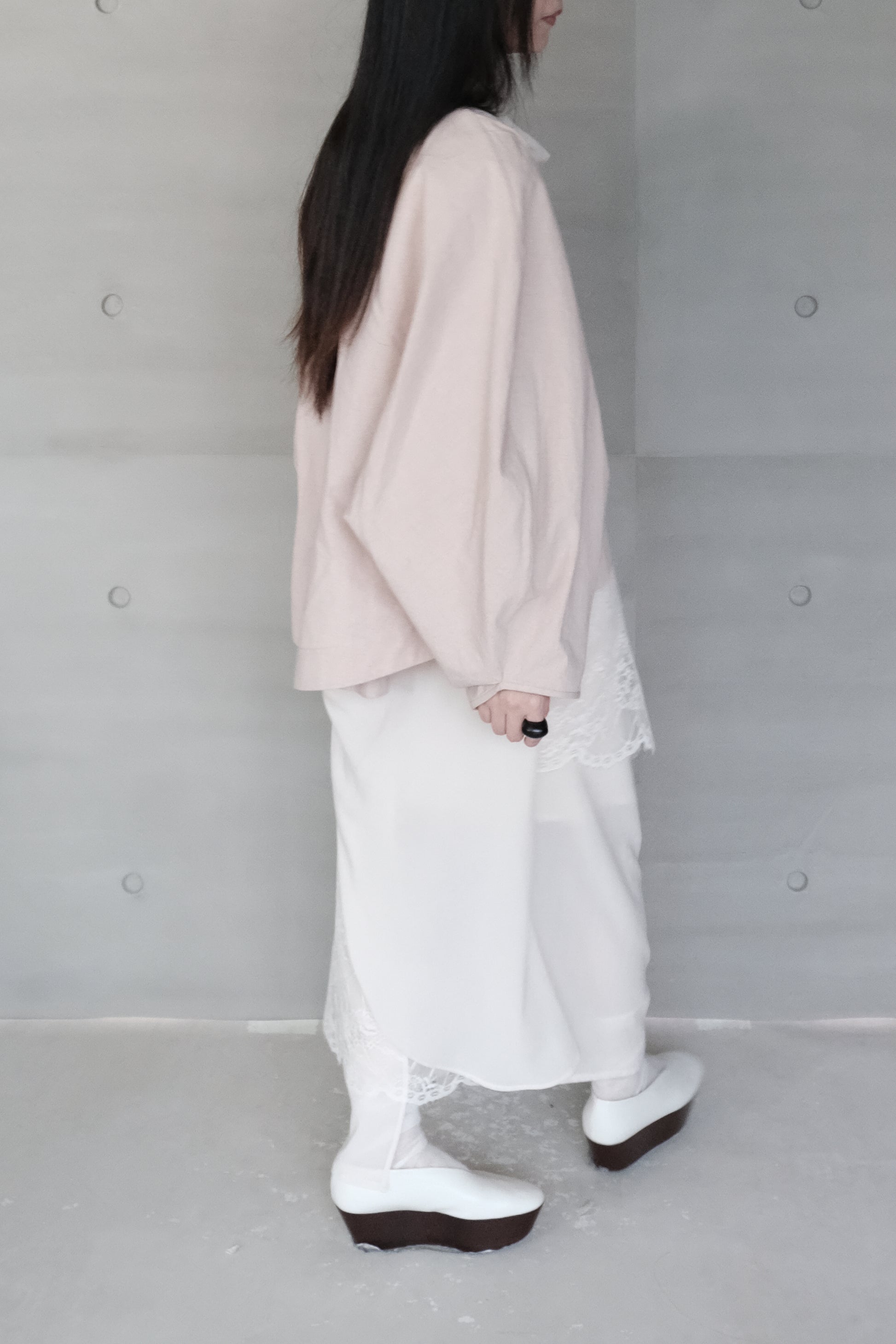 霧粉連袖罩衫外套