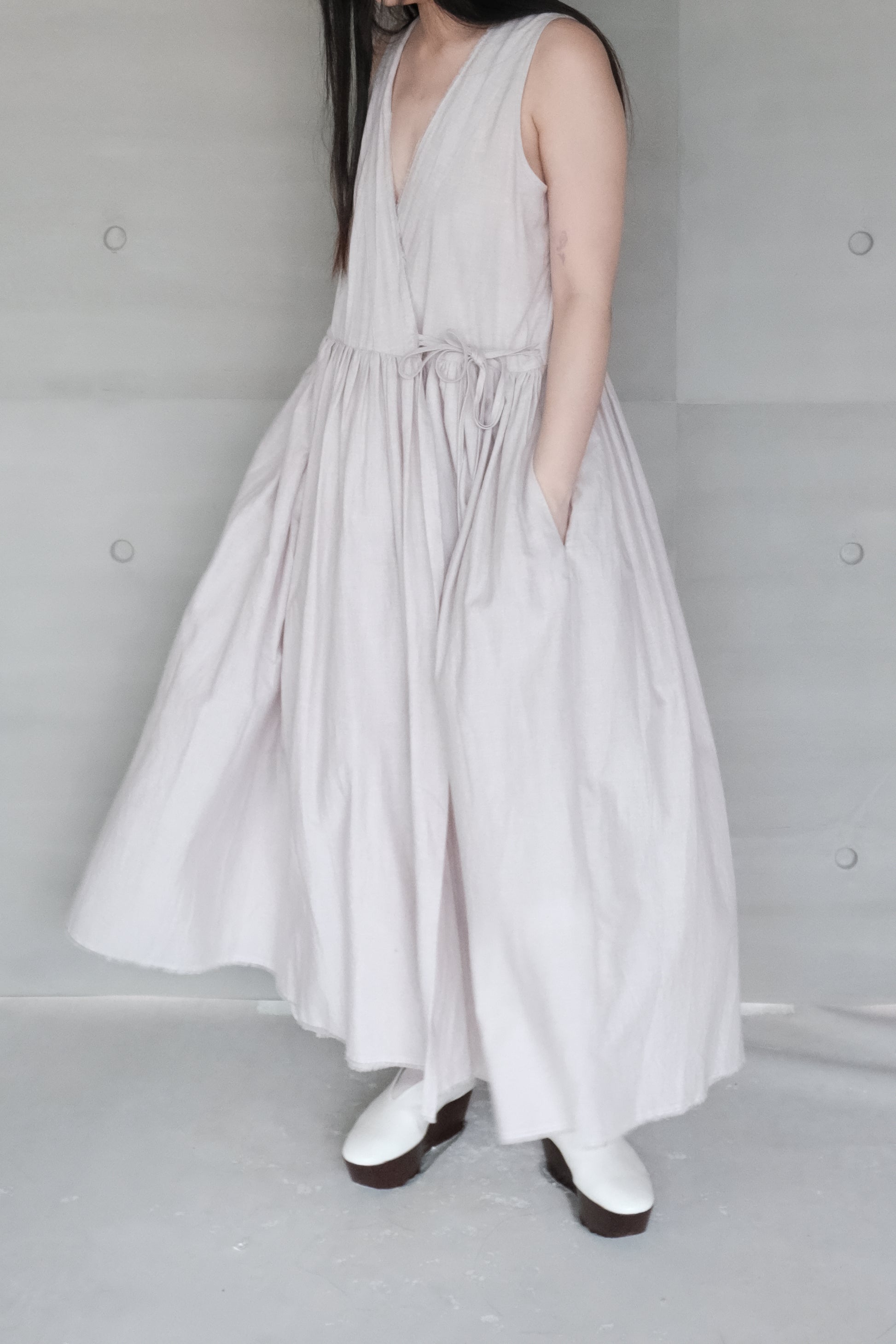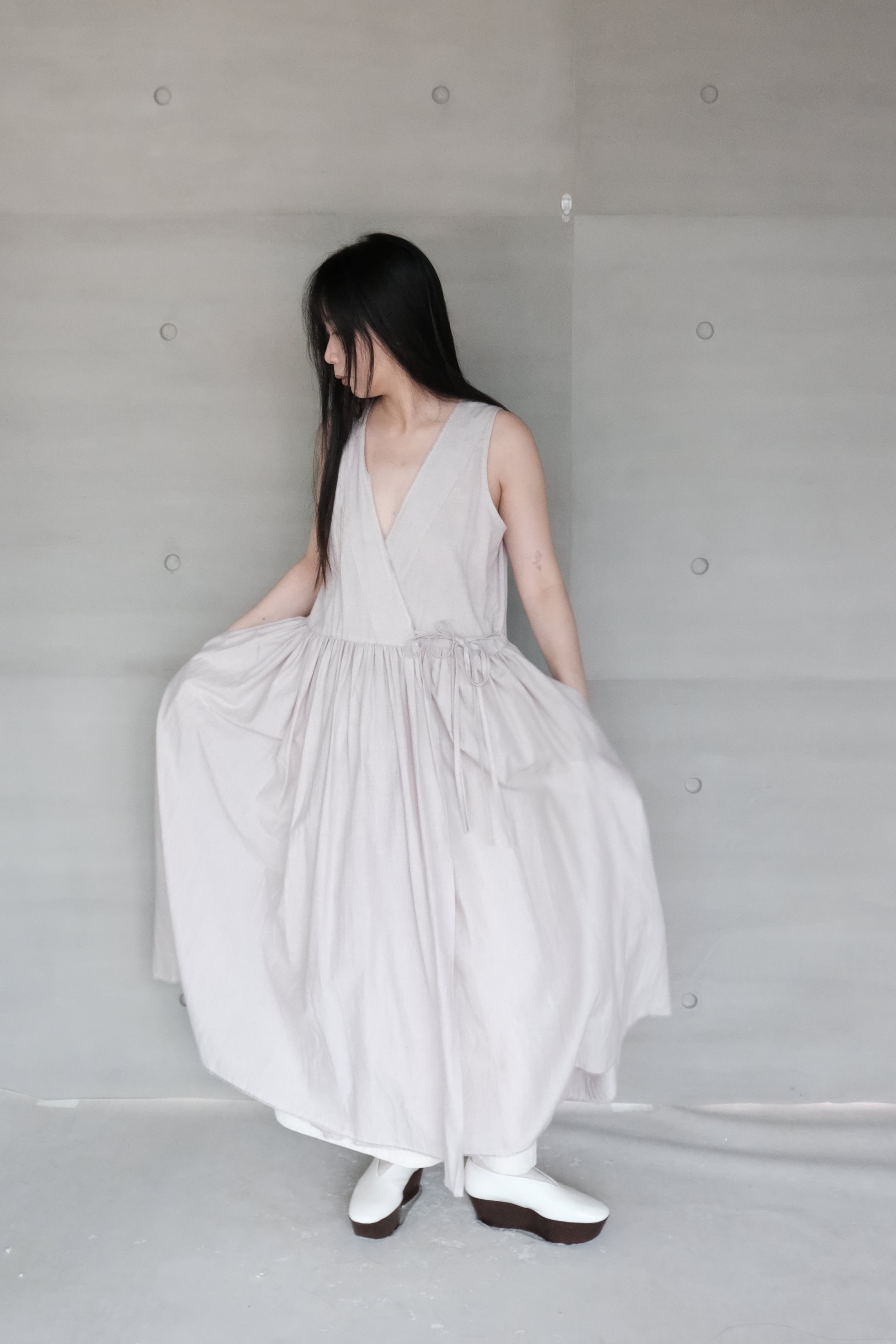 crafted from Japanese organic cotton fabric sustainably dyed with leftover blueberry food waste, this dress transforms discarded materials into soft, natural hues with new life. Handmade in Taiwan, it features a practical tank-dress silhouette with an adjustable waist tie and raw-edge finishing for a natural touch. The fabric is lightweight, breathable, and comfortable—perfect for everyday wear across seasons.