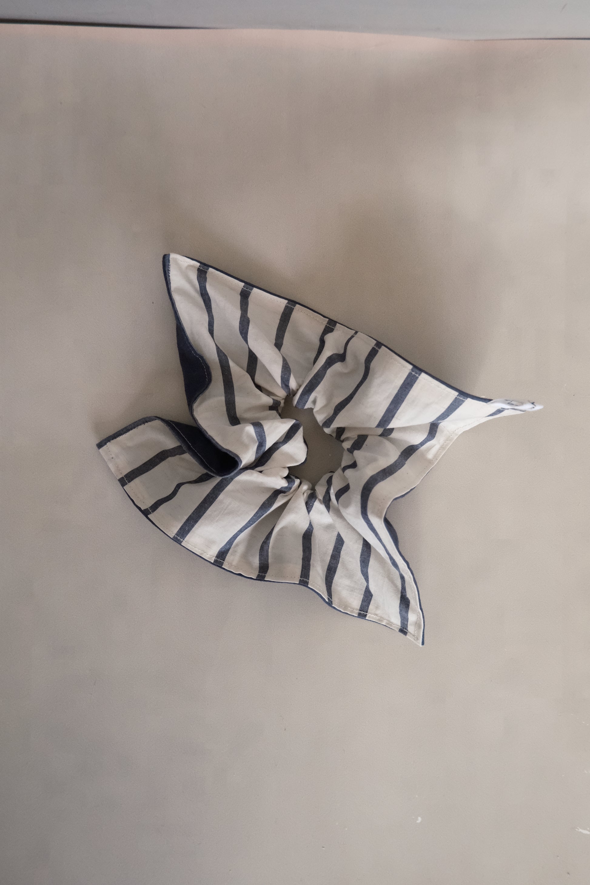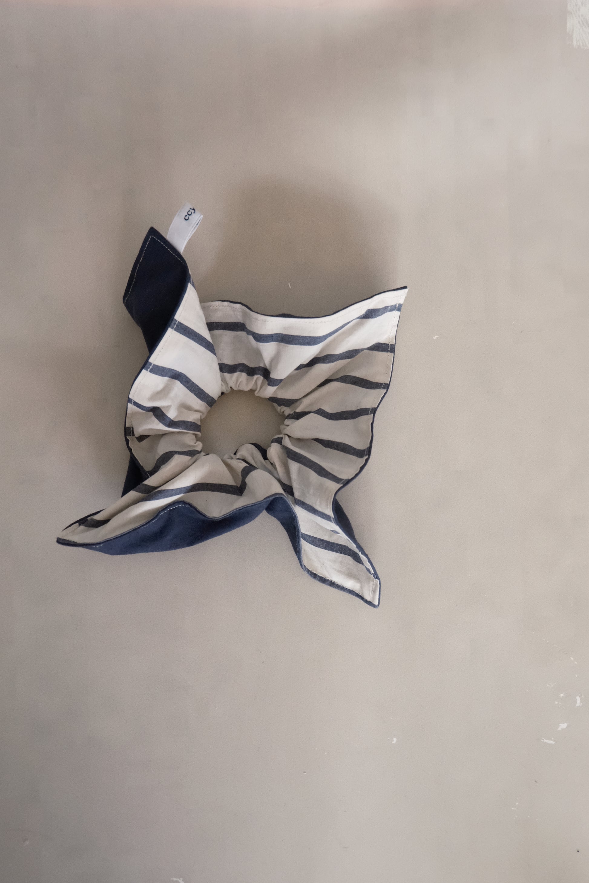 Crafted using leftover fabric scraps from garment production, this square-shaped patchwork hair tie gives new life to repurposed materials.