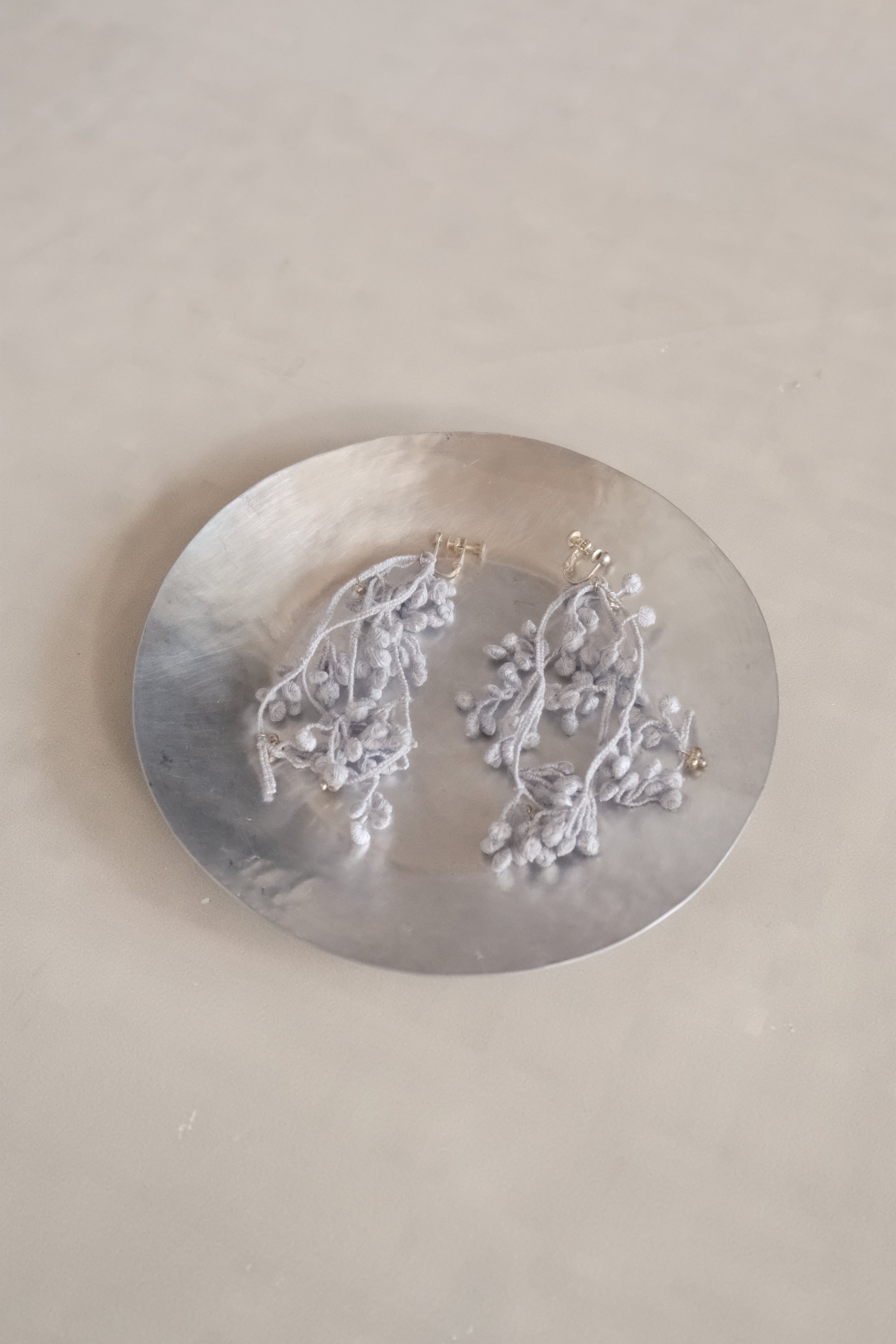 以金屬為素材,透過以噴火槍加熱、趁熱用鐵鎚敲打、再以銼刀磨製成餐具與刀叉形狀等技法進行創作的上田真理子女士,作品涵蓋從飾品到生活器物,領域廣泛。每一件作品皆由她親手細細完成,看似簡單,卻各自展現出不同的表情與風貌。